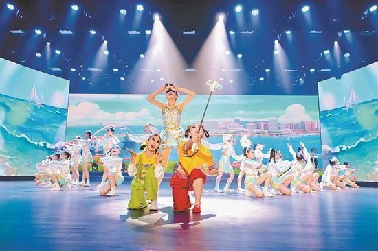 在舞台上演自己的故事,把真人真事搬上舞台。图为湖里区青少年宫带来的少儿舞蹈《小小文旅推荐官》。