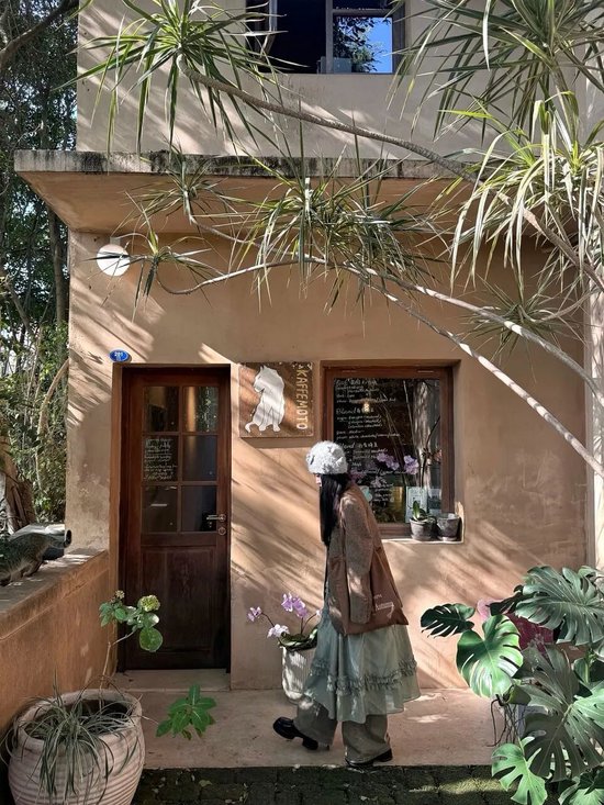 一楼的猫咪慵懒地蜷在阳光下,二楼的玻璃窗将满目翠绿温柔地框成画卷。咖啡的醇香在空气中缓缓晕开,暖阳透过枝叶洒落斑驳光影,许多人特意来拍照打卡。